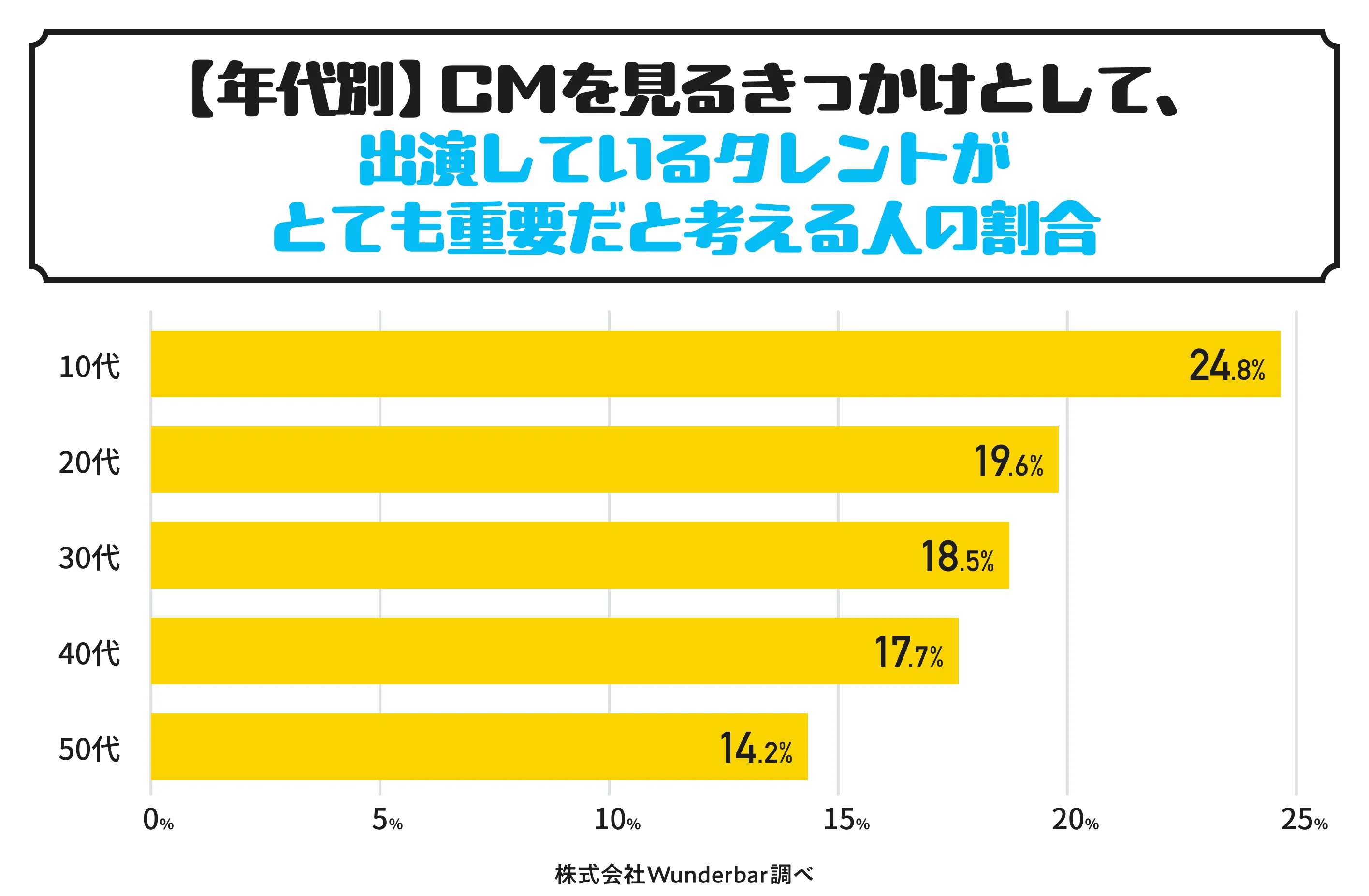 この結果から、若い世代ほど出演タレントがCMを見る理由になりやすいと考えられます。