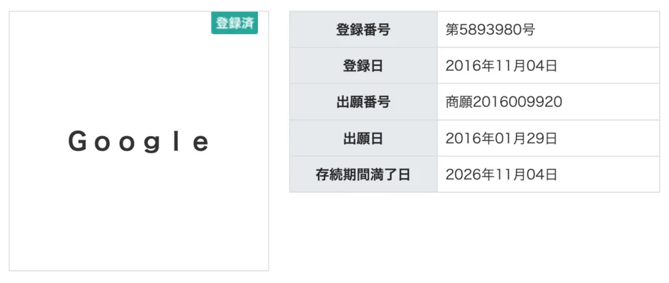 参照:Toreru商標検索「商標「Google」の詳細情報」