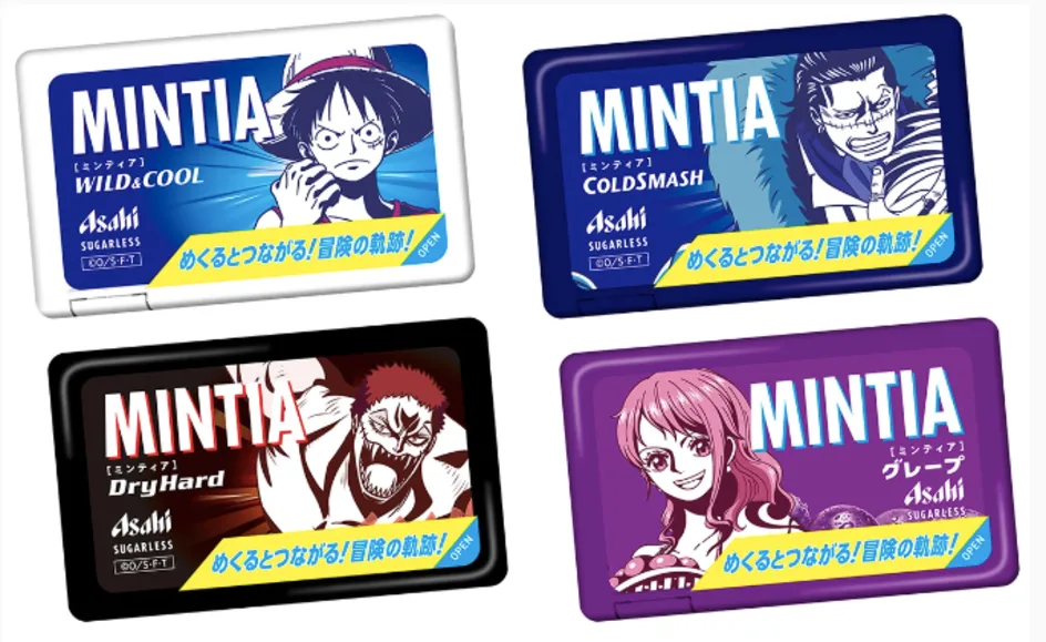 2022年8月〜2023年7月までに2回行われた、ワンピースとミンティアのIPコラボ事例です。ミンティアのパッケージにワンピースのキャラクターを使用しています。