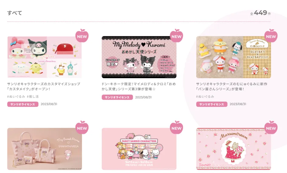 コラボ | ・ドラえもんなど人気キャラクターとのコラボグッズやイベントの開催 ・アディダスやコカ・コーラなどの有名ブランドとのコラボ商品も販売中 |
