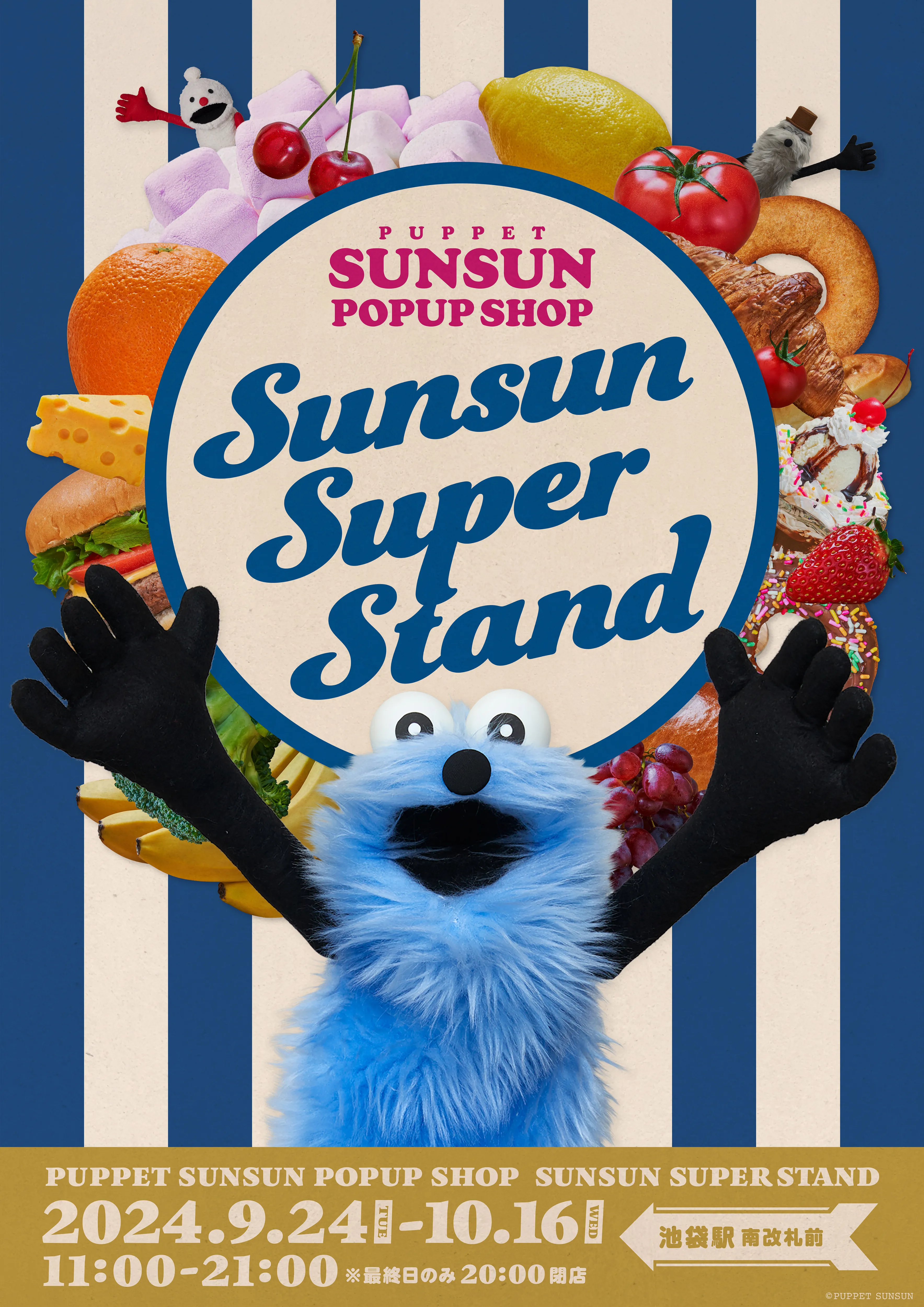 本日、2024年9月24日(火)より、海外でも大人気のキャラクター・パペットスンスンの期間限定ポップアップショップ「PUPPET SUNSUN POP UP SHOP “Sunsun Super Stand”」が、JR池袋駅(東京都豊島区)南改札前イベントスペースにて開催されます。
