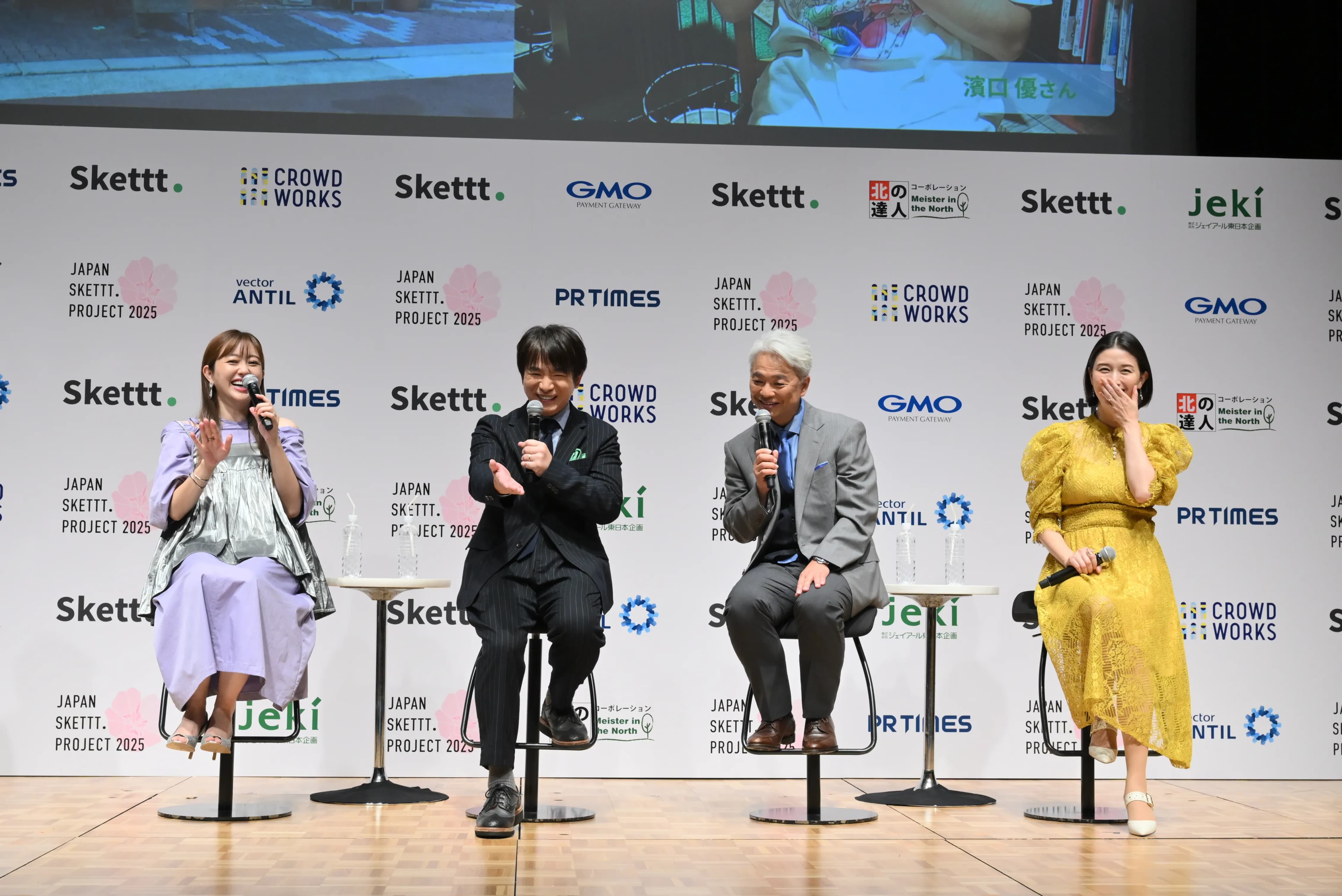 各地方のアンバサダーとして就任した、菊地亜美(北海道)、濱口優(近畿)、恵俊彰(九州・沖縄)、橋本マナミ(東北)の4名が登壇したトークセッションでは、それぞれの地元や今回のプロジェクトにちなんだテーマで大いに盛り上がりました。