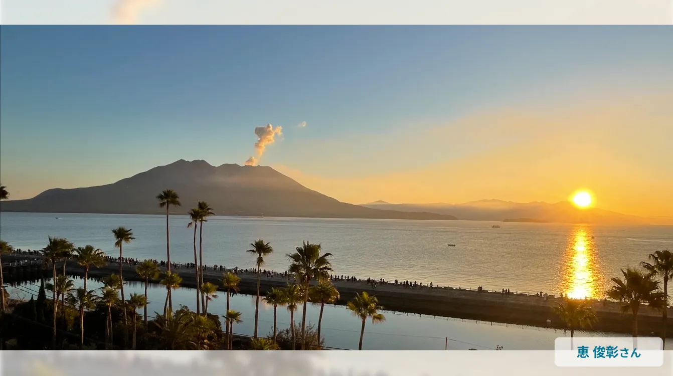 地元の印象的なエピソードを聞かれると、恵は今年の元旦に撮影された、鹿児島県桜島の写真を公開。「桜島の噴煙が(自分たちの干支の)辰のような形をしている」と、地元の友人から送られてきたものだそうです。今年、還暦を迎える年男の恵は、「この写真を見たときに、今年はよい1年になると確信した」と感慨深そうに語りました。