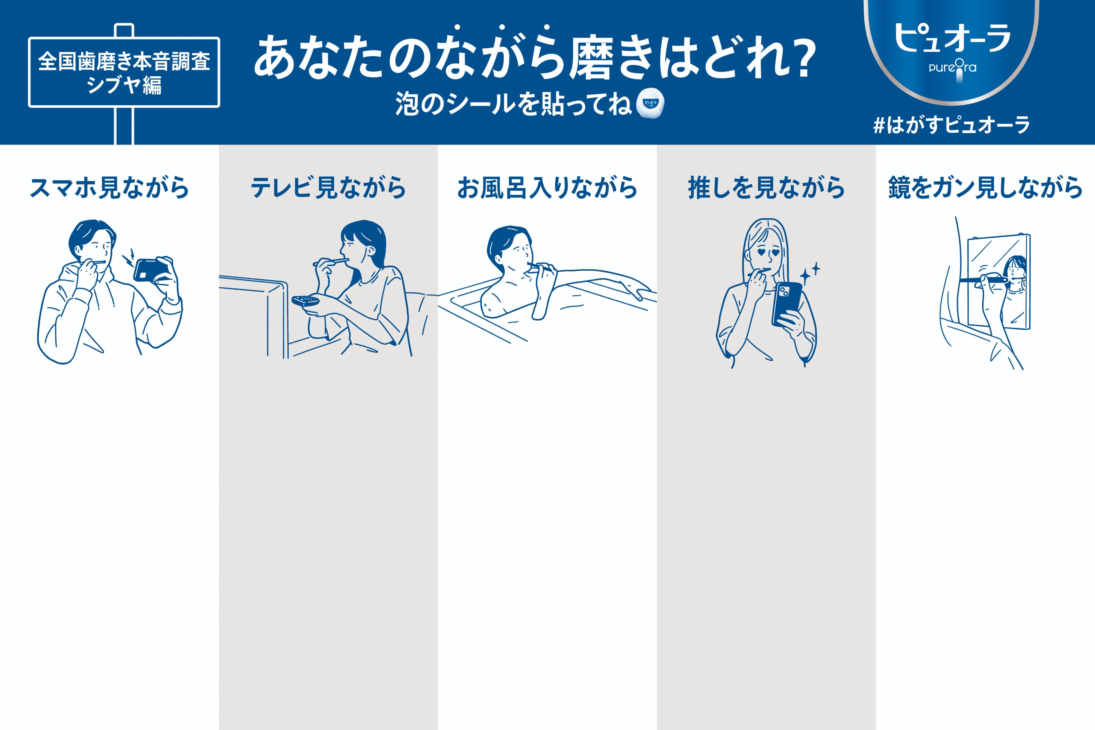 会場では、来場者の普段の「ながら磨き」スタイルを投票してもらう「歯磨き本音調査~シブヤ篇~」が開催されます。