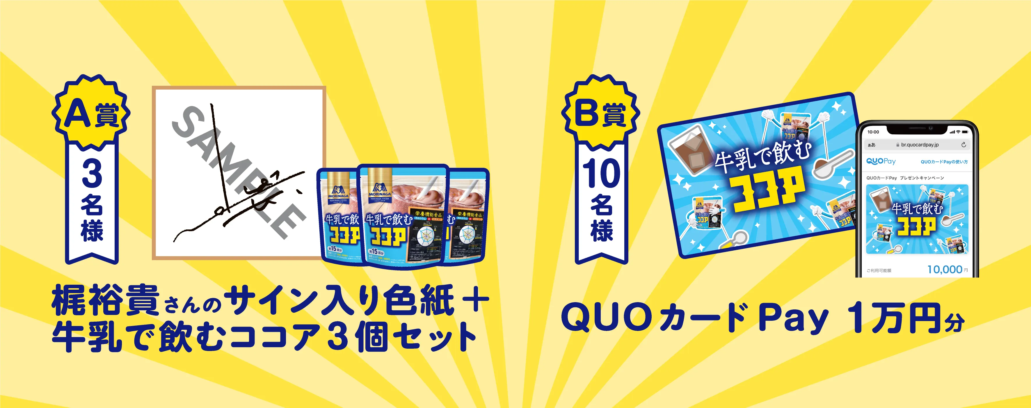 さらに、新WEB動画の公開を記念して、QUOカードPayや梶裕貴さんのサイン入り色紙と牛乳で飲むココアのセットが当たるキャンペーンの開催が決定。詳細は以下でご確認ください。