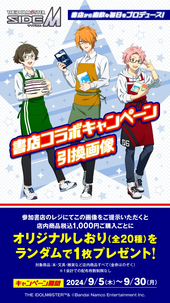「アイドルマスター SideM」と日本出版販売株式会社とのコラボキャンペーンが2024年9月5日(木)~9月30日(月)まで、全国577書店にて開催されます。