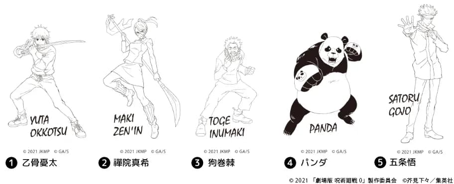 選べるキャラクター:全5種(乙骨憂太、禪院真希、狗巻棘、パンダ、五条悟)