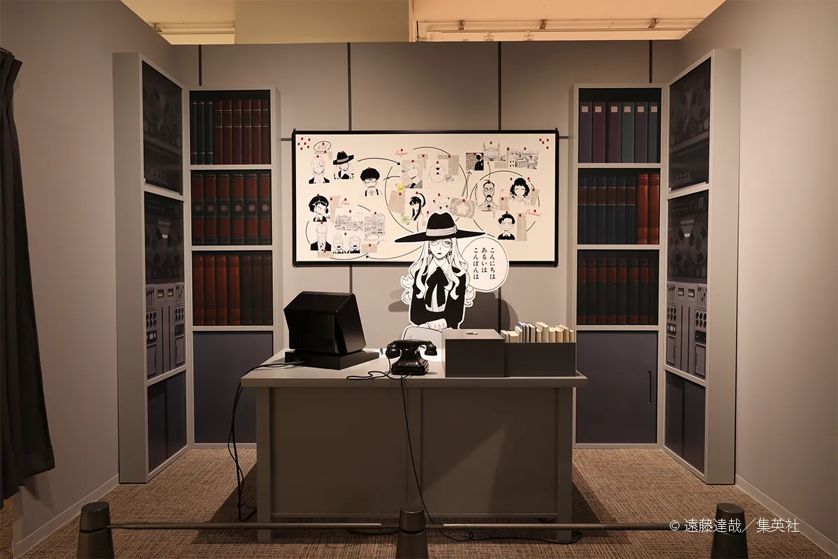 MISSION:0〜7のブースには、人物調査票や実地調査と称し、お馴染みの名シーンのイラスト展示や、立体造作、映像展示がずらり。原作の世界観にどっぷり浸かることができます。