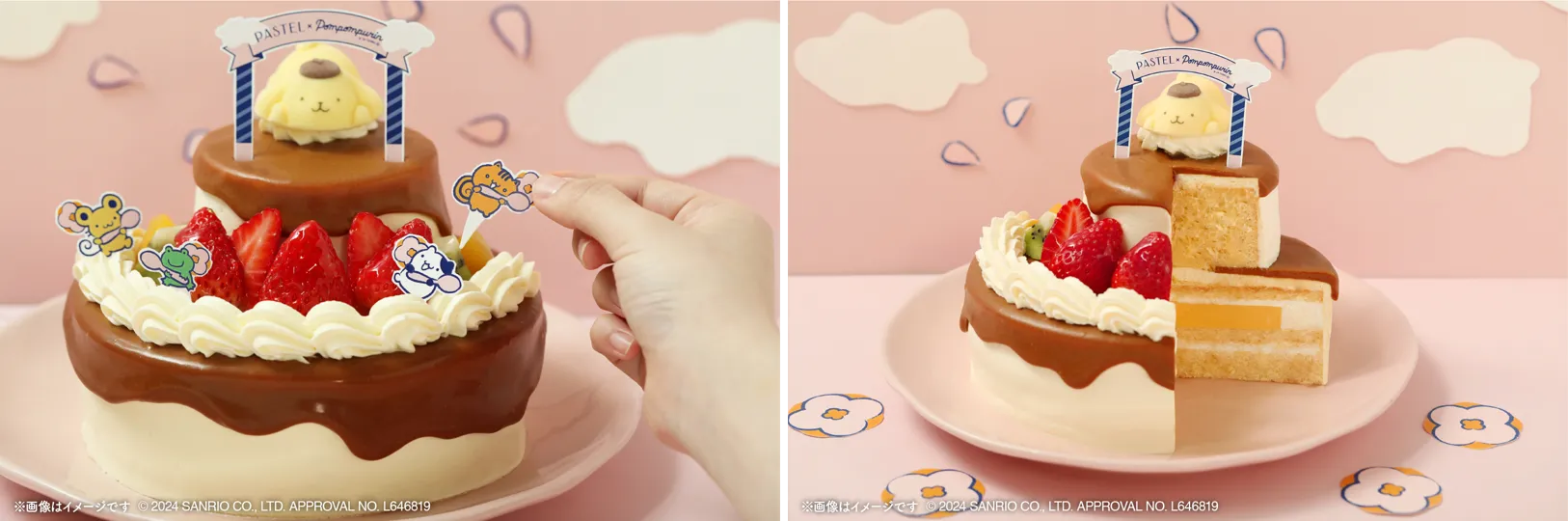 誕生日のお祝いにぴったりな、キュートで華やかな新作6品+毎年好評の『ポムポムプリンのシフォン』をプラスした7品がラインナップ!