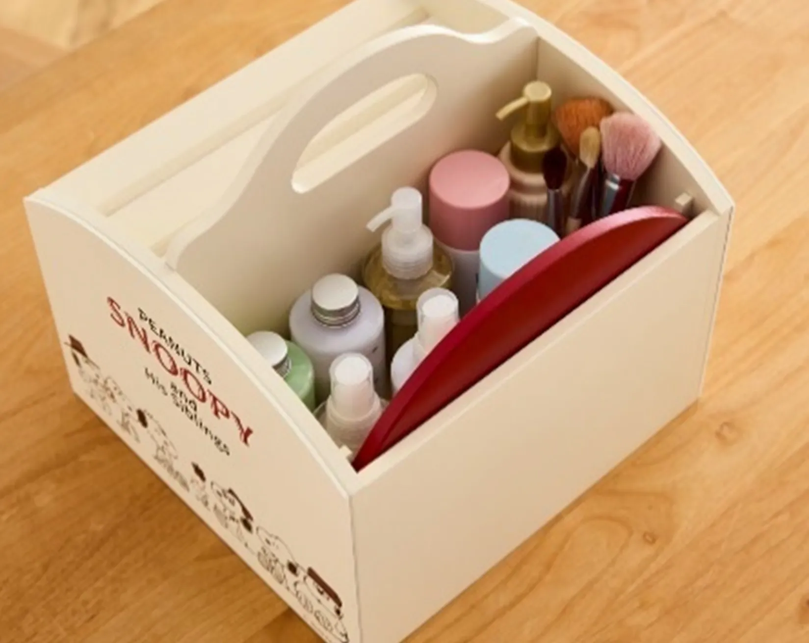 化粧水ボトルやメイクブラシを立てて収納できるスペースがあったり、鏡付きなので、その場でメイクをするのにも使えたりと、実用性も兼ね備えた商品です。