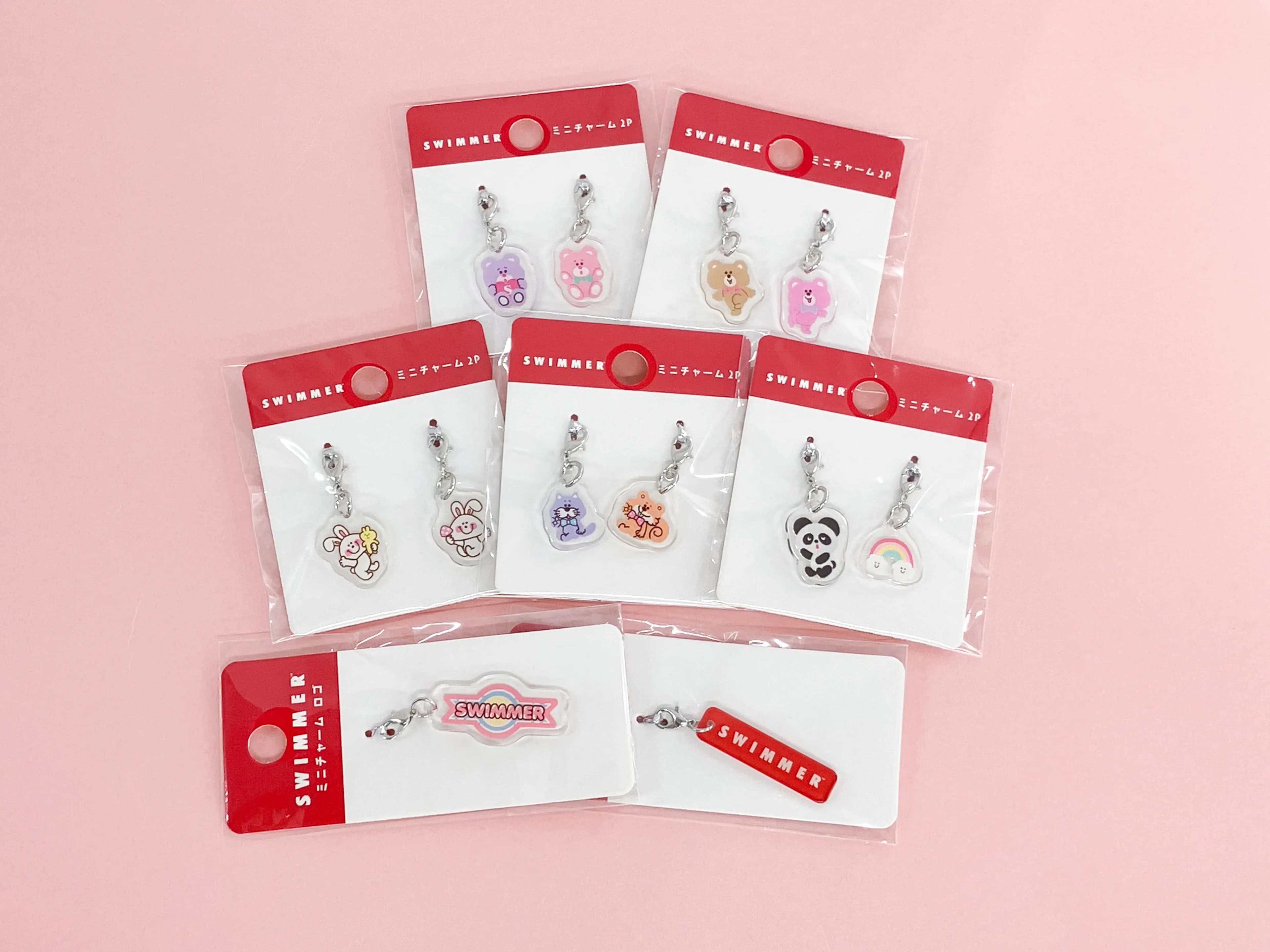 ありそうでなかった超ミニサイズがキュートなチャームは2個セットのものが5種、ロゴ1個入りのものが2種、合計7種展開。