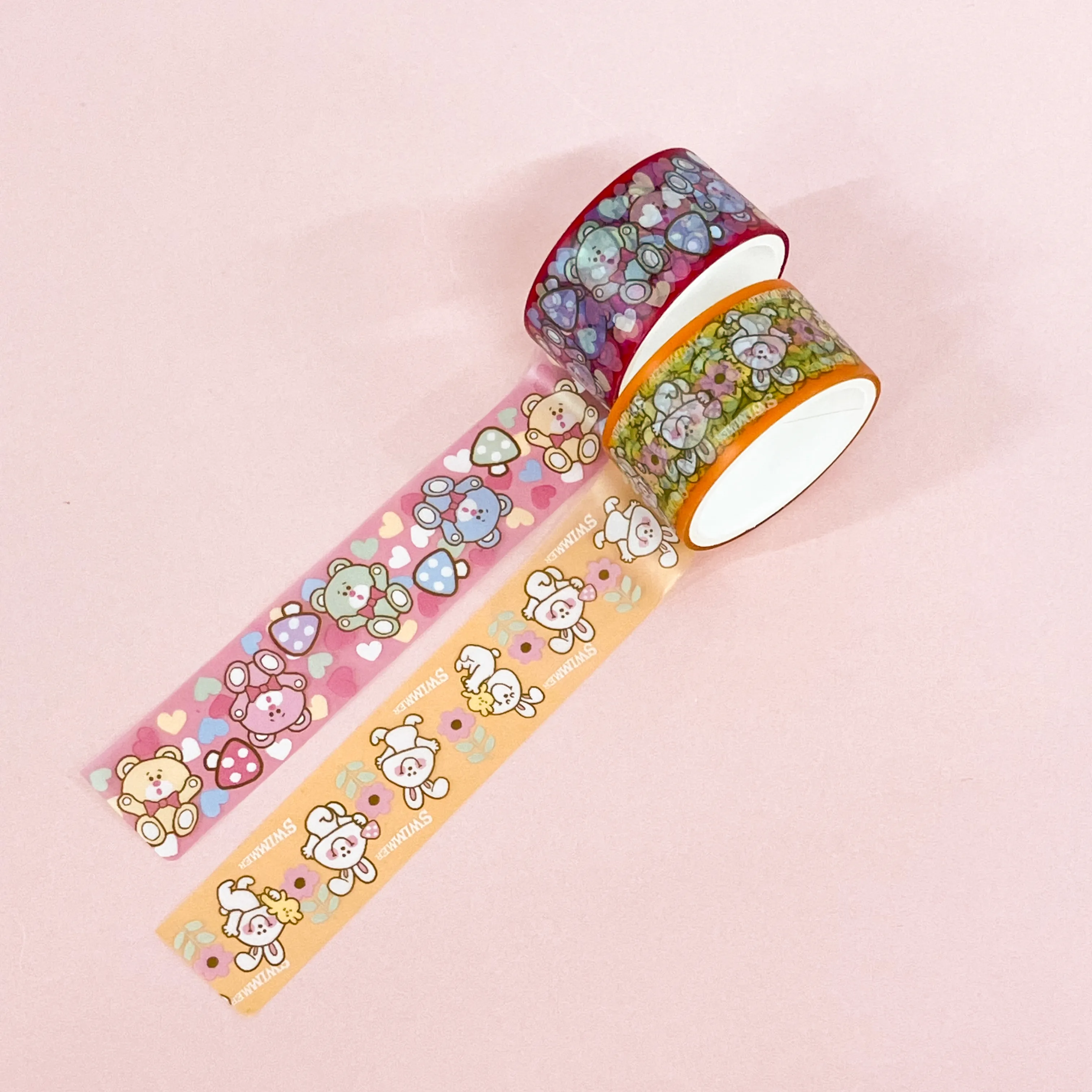 ミニチャーム、合皮ポーチのアイテムのサイズ感はこのくらい。マスキングテープが2つ入る大きさのミニポーチは、鍵やリップなどちょっとしたものを持ち歩くときにぴったりです。もちろん実際にマスキングテープを入れるのもいいですね!