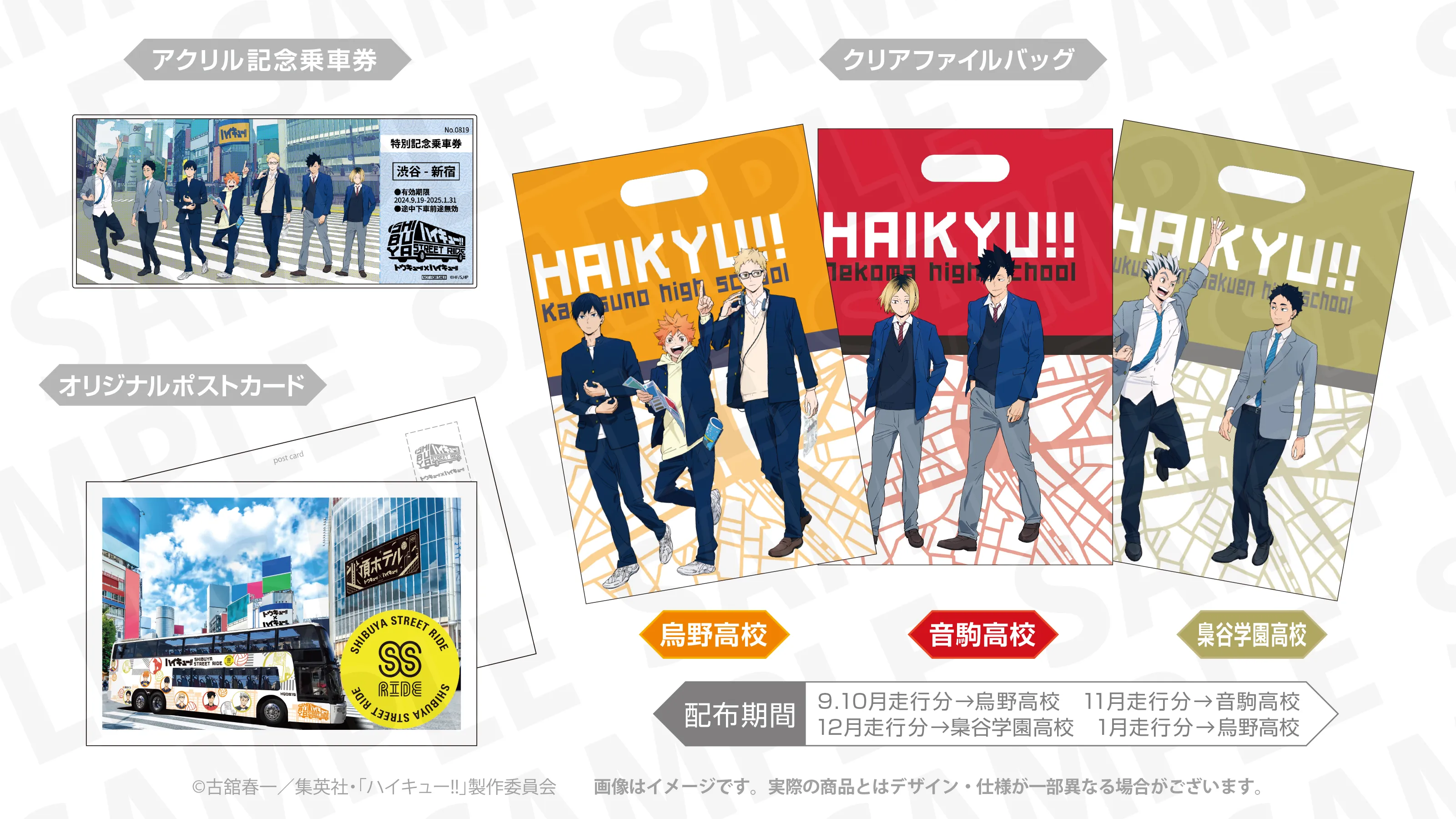 渋谷~新宿間を走行する2階建てオープントップバス「SHIBUYA STREET RIDE」が期間限定で『ハイキュー!!』仕様になって走行します。豪華な乗車特典に加えて、ここでしか聞けない録り下ろしキャラクターボイスや、『ハイキュー!!』サウンドトラックによるBGMにもご注目です。
