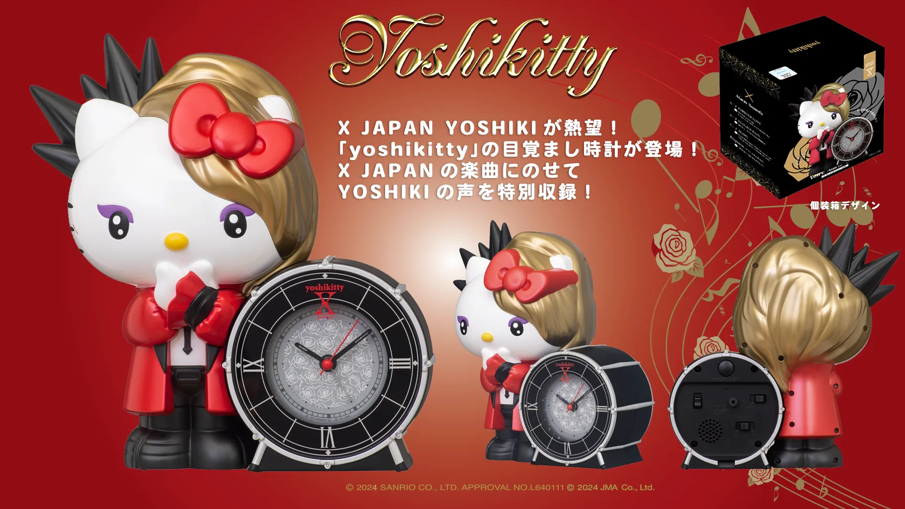 PR TIMES 株式会社あすなろ舎 「YOSHIKI」×「ハローキティ」とのコラボキャラクター「yoshikitty」の新グッズ発売!YOSHIKIの声を特別収録した「音声つき目覚まし時計」髪型を変えたNEWデザインの「ステッカー」